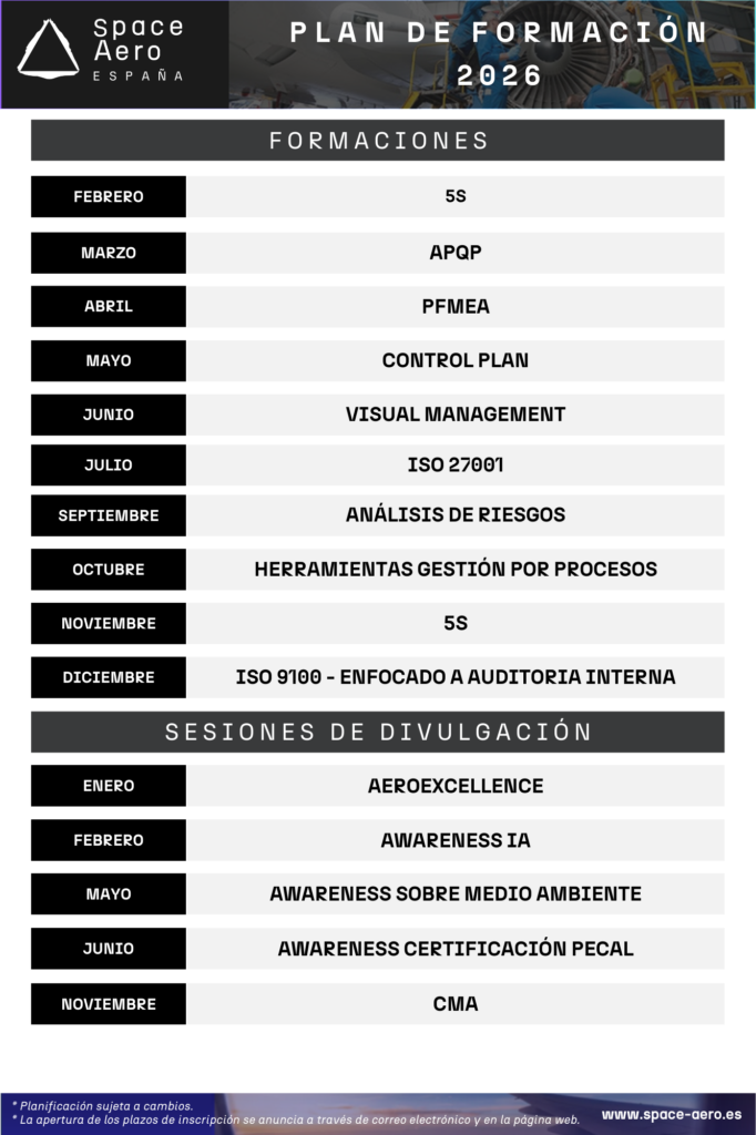 Todo el calendario formativo de Space Aero está diseñado para acompañar a las empresas de la cadena de suministro en sus retos actuales y futuros, fomentando la excelencia, la estandarización y la mejora continua.